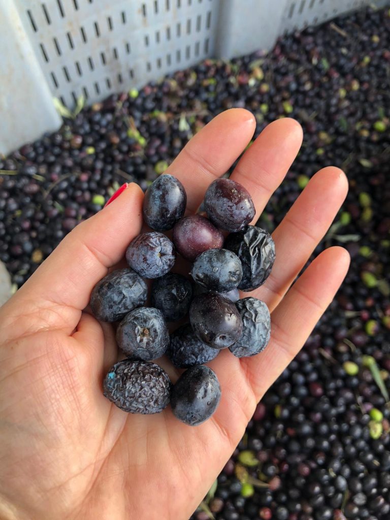 Çiftlik içerisinde yaptığımız gezi sırasında zeytin havuzları gördük, üzerinde kocaman taşlar duran. “Kap” da diyorlarmış o havuzlara. Zeytinler içine atıldıktan sonra üzerine taşlar konuyor ve taşların seviyesi düştükçe zeytinin yenebilecek duruma geldiği anlaşılıyor. Bizans Dönemi’nden kalma bu usul çok etkileyici; hele onu bilfiil yaşamak, hasat edilen ilk zeytini avucuna alıp havuza atmak, hatta ilk atan olunca bahşişi kapmak inanılmaz hisler yaşattı. Zeytinin soframıza gelene kadar ne çok hikayesi vardı ve tek bir tanesi bile ne kıymetliydi!
